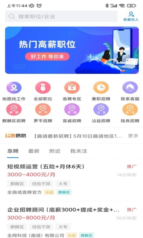 对小编带来的全曲靖直聘网的内容还满意吗?关注软件爱好者,海量游戏和软件任意下载!