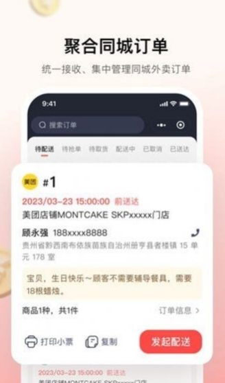 具有灵活多样的订单处理功能,支持短信提醒、打印小票、自动派单等功能,让商家轻松处理各种类型的订单