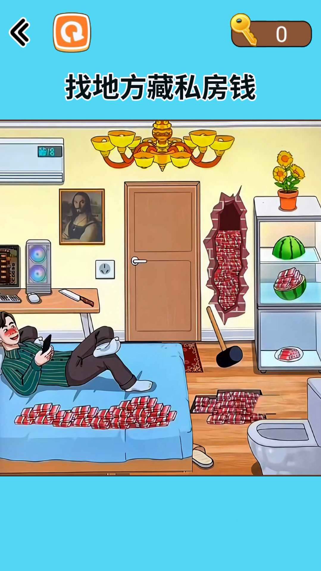 3、一些复杂的场景设计,需要玩家通过拼图和解锁机关才能找到藏钱点。