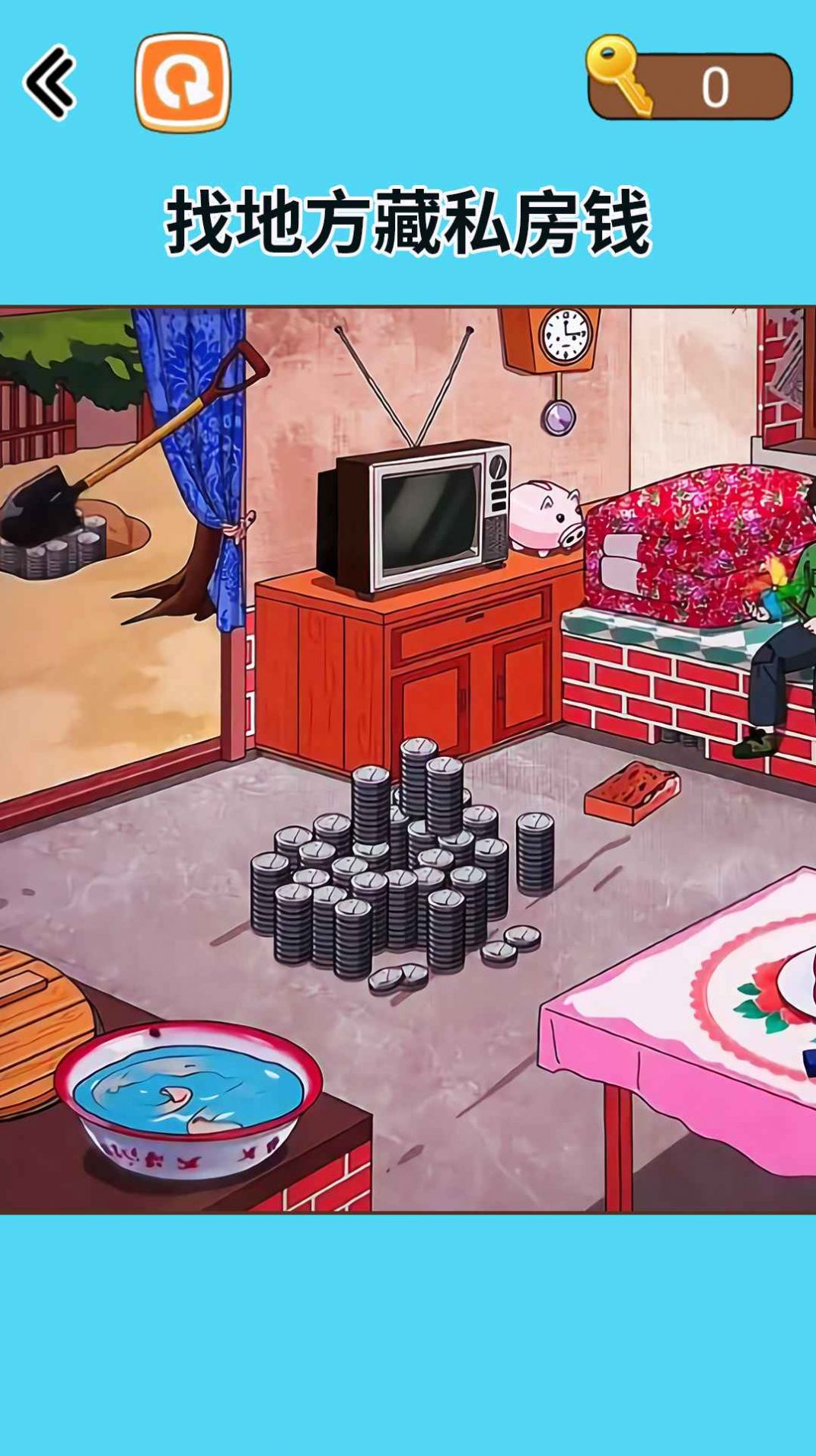 藏钱达人是一款私房钱查找挑战类游戏,每关都有不同的场景信息,玩家需要靠自己的观察能力来判断出私房钱的位置,然后找出去就算过关,如果遇到寻找困难可以使用道具来帮助自己,没有任何的时间限制,玩家可以慢慢的去观察寻找,关卡内容很丰富。