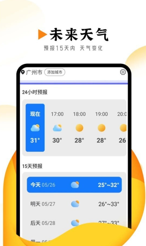 实时天气查询:用户可以随时查看当前天气状况和未来几天的天气预报