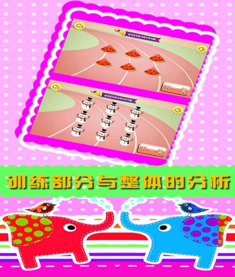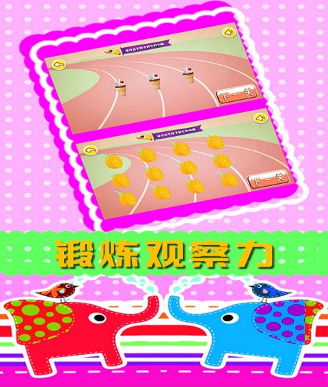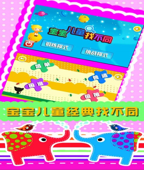 宝宝儿童找不同,现在升级啦!孩子从小就要锻炼观察能力,养成归纳整理的好习惯。这里可以训练孩子分析部分与整体的关系,学会从整体到部分的分析能力,提高识别能力,锻炼逻辑思维力、形象思维能力!适合孩子和家长共同娱乐,在有趣的游戏过程中,在轻松愉快的气氛中获得知识,开发智力,促进亲子关系。