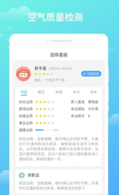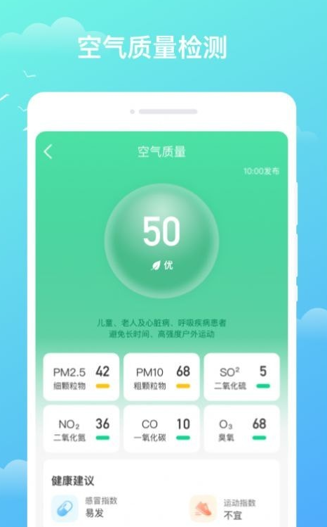 空气质量监测:提供了空气质量监测功能,让用户可以了解当地的空气状况