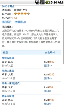 通过手机快速查询全国30000多家酒店宾馆信息软件。内容包括:芒果酒店、去哪儿酒店、携程酒店、艺龙酒店、同程酒店、酷讯酒店等信息。只要您的手机连接到网络上,轻轻点击几下手指,就能让您第一时间查询到全国30000多家酒店宾馆信息。该软件是一款免费手机软件,其小巧、实用是一款不可多得的好软件。