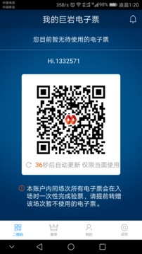 巨岩电子票是目前国内创新的尖端无纸化票务系统,用户通过合作票务平台购买电子票产品后,只需通过使用购票时预留的手机号登陆巨岩电子票APP,即可查看到自己的电子票务信息,并且支持通过扫描首页账户二维码进入场馆,免去排队取票的烦扰。同时巨岩电子票还支持在线赠送电子票。它简单、安全的操作方式会是您最好的票务选择。