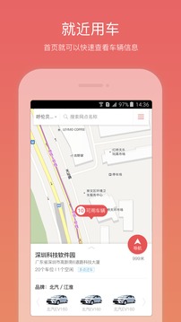 通过手机应用快速寻找周边租车点,自助取还,操作简单,随心使用,计费灵活,实时查看当前费用,移动支付,零排放,环保出行。