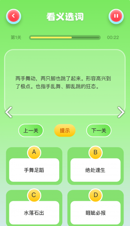 4233成语乐园是一个成语学习软件,里面汇集了多种成语学习模式,通过一些成语小游戏来学习成语,加强自己的成语学习水平和成绩,各种成语都有详细的解析,不懂的成语轻松秒懂,效率都非常的高,随时可以在线学习成语,内容都是免费的,服务很到位。