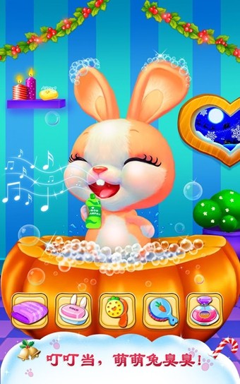 - 为你的小兔洗个澡,直到她看起来闪亮、干净!