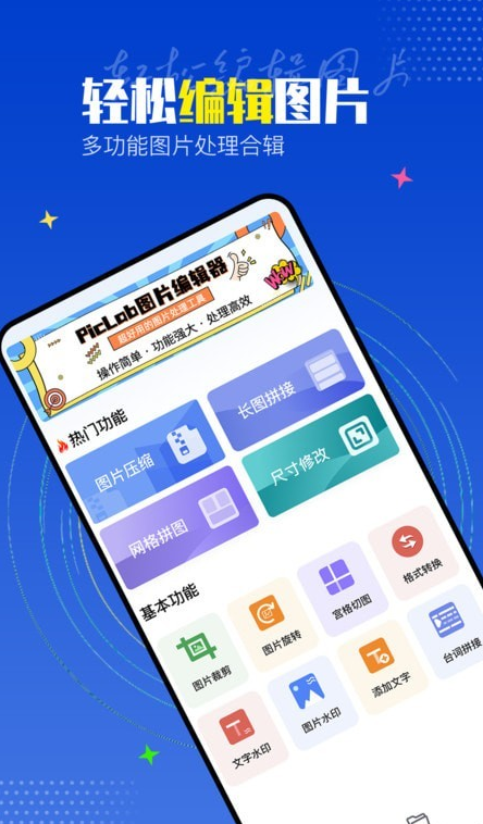 PicLab图片编辑工具app内置了非常多好用的图片编辑工具,能够满足小伙伴们对于图片处理的不同需求。使用该软件可以对图片进行裁剪、拼接,多种拼接模板可以免费使用,制作出精美的拼图。同时可以为图片添加喜欢的滤镜、文字、水印、特效等等内容,操作简单便捷。通过该软件可以提升用户们处理图片的效率,有需要的朋友们赶紧来看一下吧!
