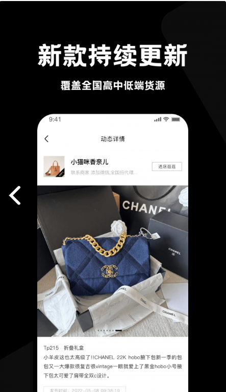 包包货源是一个买包商城类软件,里面有各种类型的包包,价格都比较的实惠,全部都是正品有保障的包包,清晰的视频和图文展示,可以放心的在这里购包,每天都会上新很多的包包,都是原厂家进行发货,物流信息都可以在线及时的查看,售后服务很周全。