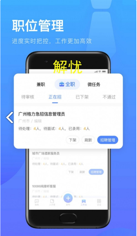 2、不等待,不犹豫,下载后直接上线投简历找工作。