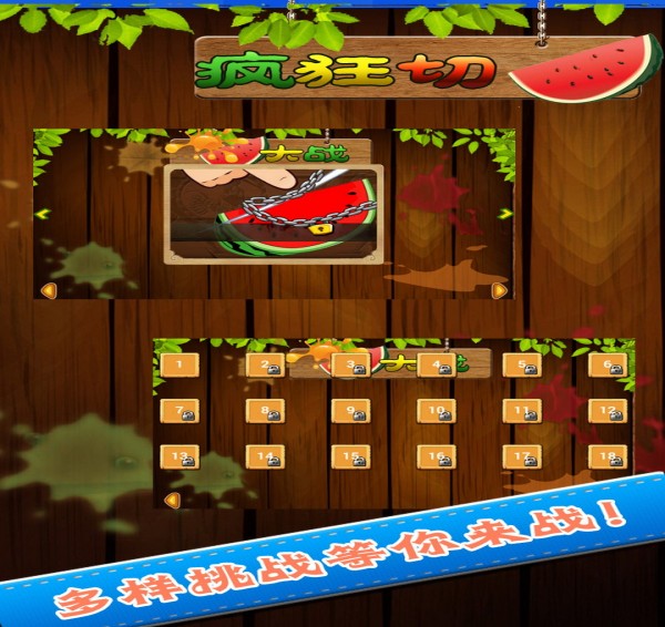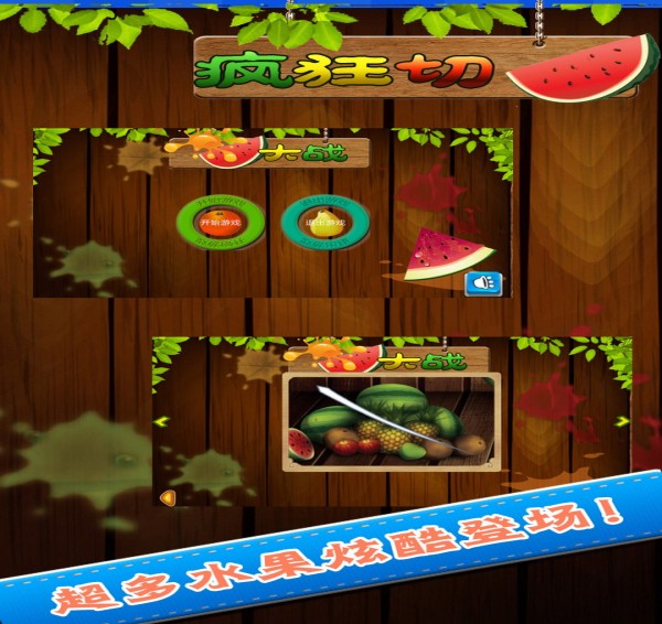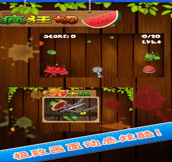 疯狂西瓜水果大战是一款刺激好玩、容易上手却教人难以离手的动作游戏,玩家将会在游戏中扮演一个讨厌水果的忍者,用锋利的刀切开各种水果。西瓜,菠萝,猕猴桃,草莓,蓝莓,香蕉,苹果……你一定要赶在它们掉落之前把鼠标当成快刀将它们全部切掉!当中也会有炸弹迷惑你的眼睛,千万不要碰它!不然你就over了。当然还有多种游戏模式,更好玩! 土豪切西瓜是一款简单的休闲游戏,目的只有一个——砍水果!屏幕上会不断跳出各种水果--西瓜,凤梨,猕猴桃,草莓,蓝莓,香蕉,苹果等等---在它们掉落之前要快速的全部砍掉!千万别砍到炸弹!不然就over了。还有时间模式没有炸弹,全凭你的技巧了! 还有一定几率从屏幕左右侧弹出新奇水果很难切割。 更可变身机枪炮打水果,带给你超爽感觉!
