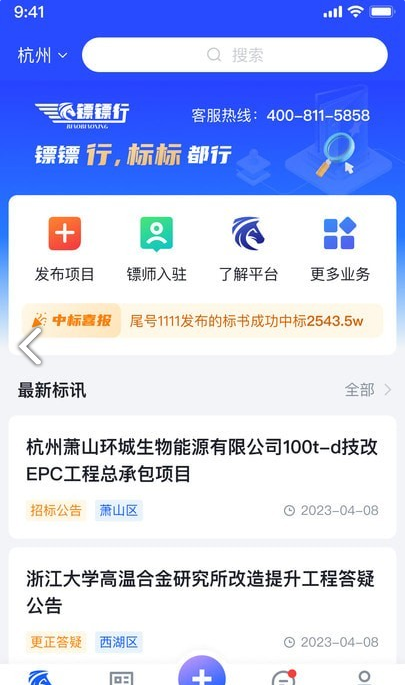 镖镖行是一个投标行情资讯软件,它主要就是为企业定制专属的投标计划,目前的市场情况都可以及时的去了解,数据都会相同的进行统计和分析,投标该投哪个区域或者怎么投都会给到你一个绝对的方案,提高企业的办事效率,和增加收益,服务很周全。