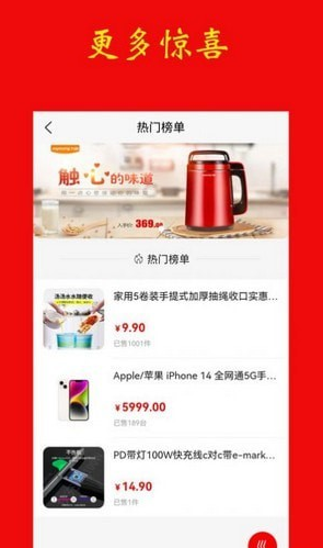喵聚返app可以为小伙伴们带来更加优惠的购物体验,汇集了非常多优质的商品资源,能够满足用户们对于网购的不同需求。每天还会用户们发放免费的优惠券,使用优惠券购物更加省钱。同时会不定时发布各种优惠活动,使购物没有任何经济压力。所有购买的商品也会为你包邮送到家,让小伙伴们购物更加便利。