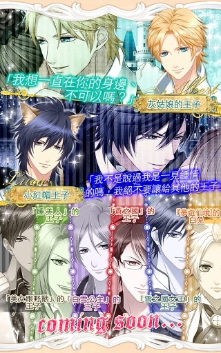 这个少女游戏有不同活动、可以替不同的可爱的角色换装、赶快披露自己的公主打扮认识更多朋友吧。期间限定活动中、会有特别的剧情和角色。不只有公主的角色、也可以替王子的角色换装喔!游戏基本是免费的、但花钱购买部分道具对游戏更有利。