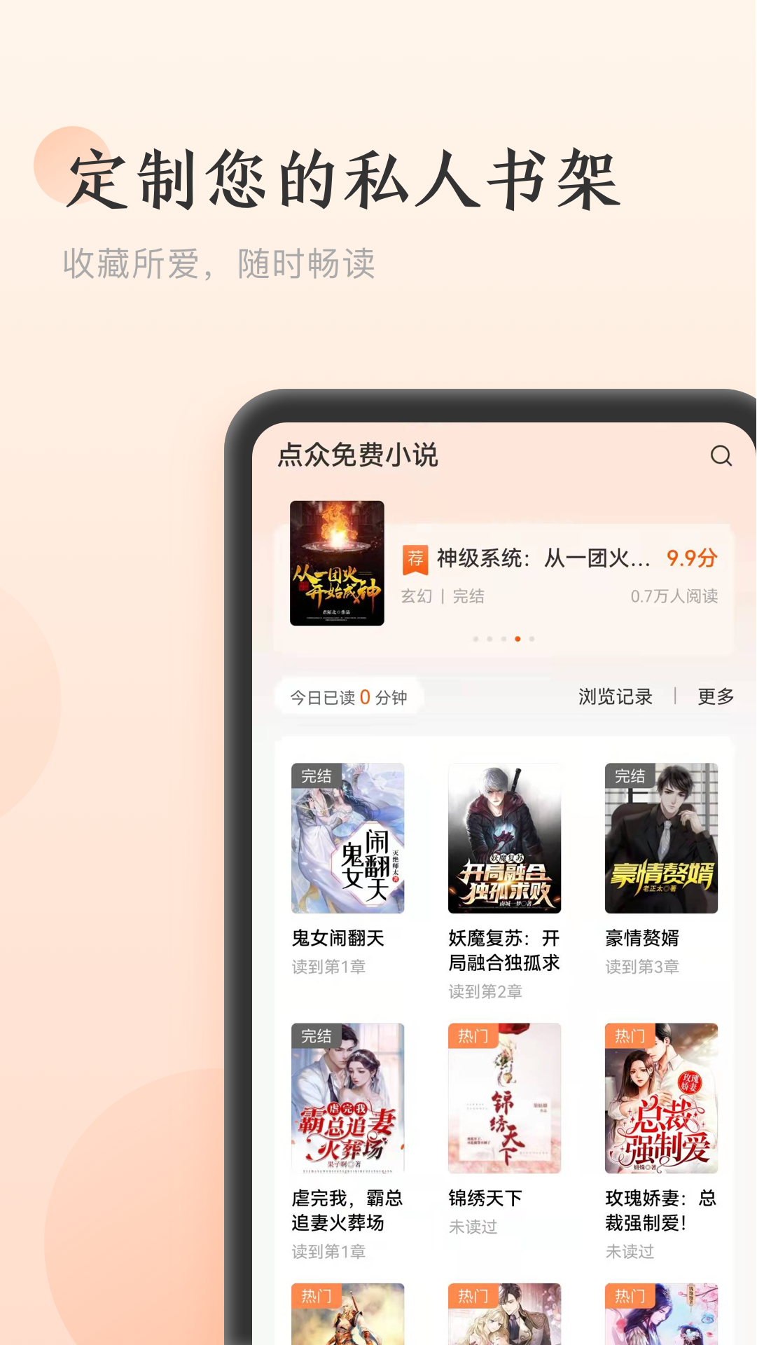 点众免费小说app特别适合那些喜欢阅读小说的朋友们,汇集了超多优质小说资源,涵盖了各种不同题材的小说,全部都是可以免费畅读的。在阅读小说的过程中没有任何广告弹窗和乱码的问题,还可以将喜欢的小说缓存下来,即便没有网络也可以随时畅读。同时可以自定义设置小说的阅读界面,能够对阅读背景、字体样式、字体大小等等内容进行更改。