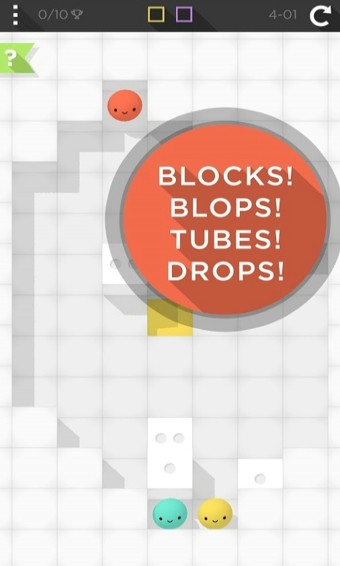 Smoosh! 不同颜色的小球可以合并成第三种颜色,借助障碍物,将小球滑入相同颜色坑中。