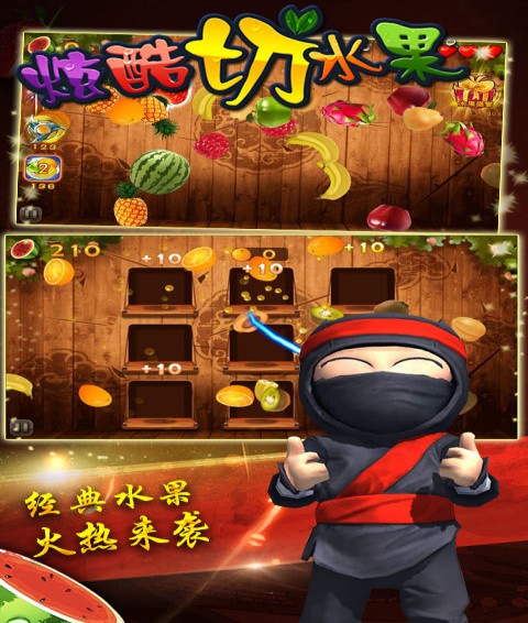 《炫酷切水果》全新体验来袭!游戏加入全新的挑战模式!更刺激的游戏感受等你体验!丰富的道具,有趣的玩法!更多游戏元素全面开放!全新的设计,丰富关卡模式!排行榜上一较高低!只要玩家用手指轻轻切开屏幕中出现的水果就可以获得相应分值,玩家可以创造出有自己特色的刀光,横切,竖打,弧线,“Z”形等等。总之,手指在屏幕上想怎样比划都可以,还在犹豫什么快来试试吧。