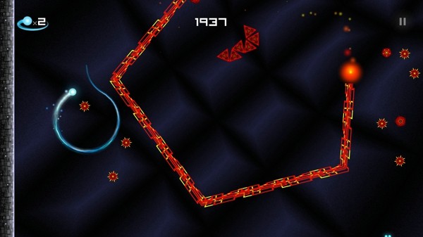 《连环:革命 Cyclos: Revolution》是个画面制作的非常美观的游戏,游戏里可能体现不出来,但是至少菜单动画很漂亮。游戏的玩法融合了多个独特的玩法,玩起来感觉也很棒。玩法类似贪吃蛇却更复杂的休闲虐心游戏,故事坐落在神秘的宇宙 Photonia 中,你所操作的是一个闪闪发亮的神秘圆环。它需要在宽广的空间中自由流动,并吃掉闪着红光的圆形体。虽然撞上墙壁不会有任何伤害,但时而袭来的刺球可是会让其瞬间命陨!而玩家在游戏中只能通过触屏改变它的旋转方式,因此操作预判十分困难,对于喜欢挑战自我的童鞋,可以好好试试本作哟!