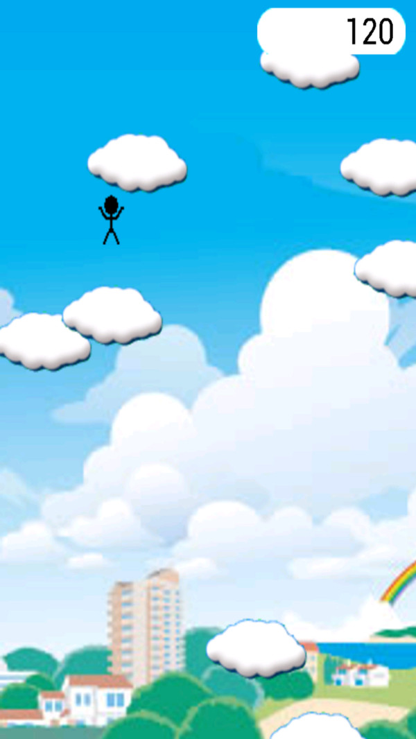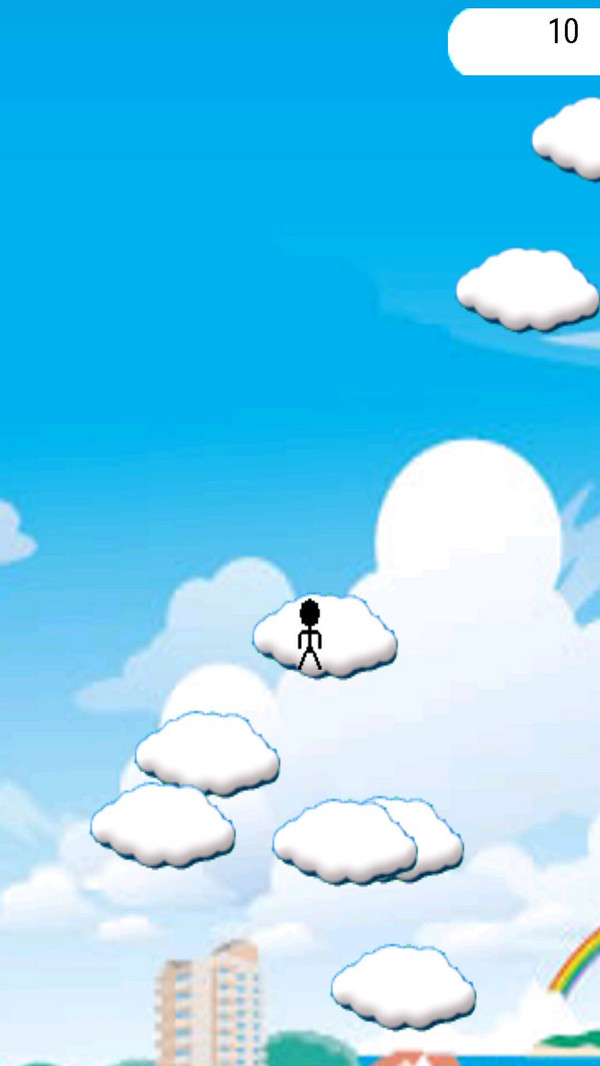 云端的火柴人是一个调云挑战类游戏,操控自己的火柴人去跳云,一层一层的跳上去,玩法比较的简单,只要能跳到最高层就算胜利,关卡数量都非常的多,如果两个云隔的非常近那么可以直接用力跳到另外一朵云层上面去,两种模式可以去挑战,非常有趣。