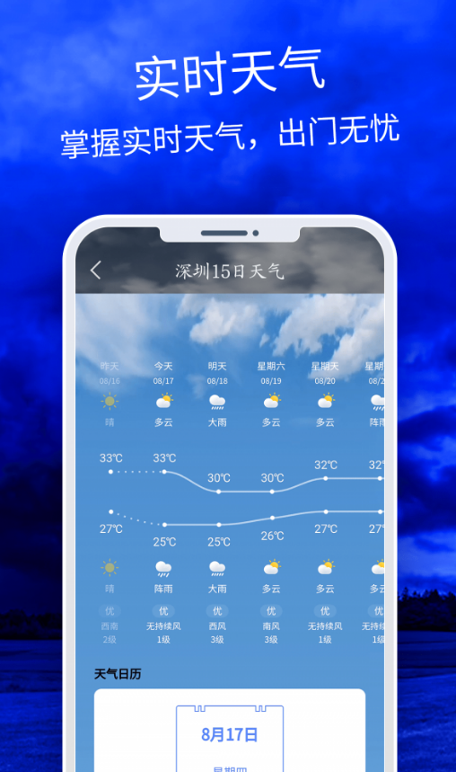 能够提供实时的天气信息,包括温度、湿度、风向、风速等,让用户随时掌握天气变化