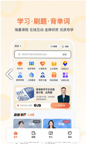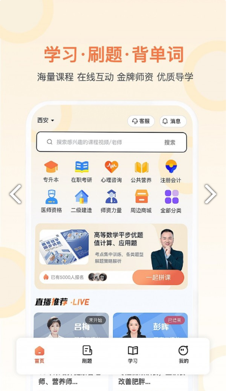 3、个性首页,自主选择考试科目,精准定位学习需求