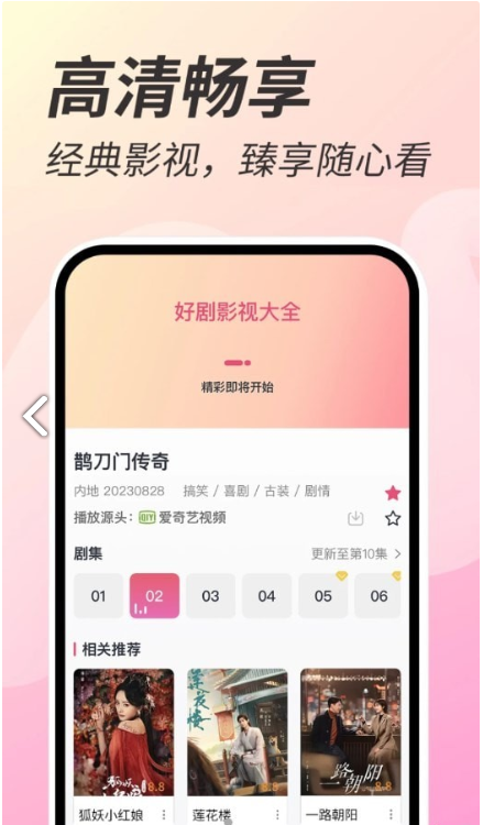 好剧影视大全是一个影视播放软件,里面汇集了多种好看的影视视频内容,资源都比较的丰富,更新的也都很及时,搜索关键字就可以获取到相关的影视内容了,种类都划分的详细,一键就可以播放观看了,没有广告也没有收费,所有的影视都是免费的。