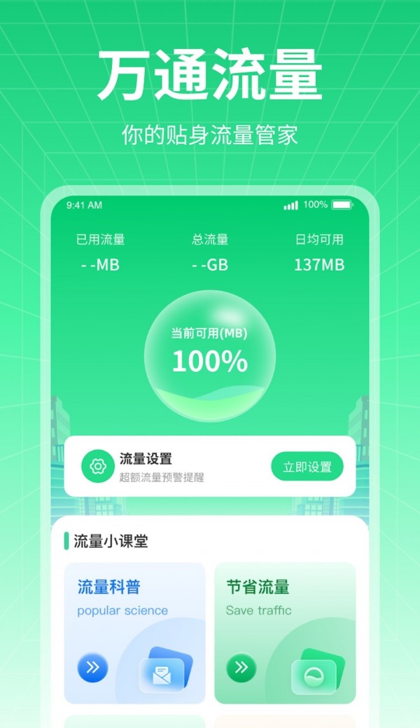 具有简洁直观的界面设计,用户可以轻松查看和管理自己的流量使用情况