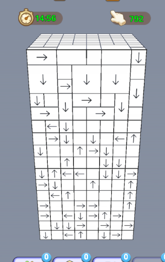 消个箭头呀是一个箭头消除类游戏,在游戏里面有很多的方块,方块上面有不同方向的箭头,需要根据规则来消除指定方向的箭头,消除完所有指定的箭头方块就可以过关,比较考验玩家的智力和反应能力,过关可以领取到很多奖励,关卡的数量也很多,难度还是有的。