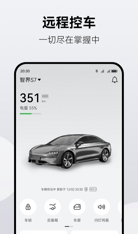 可以实现手机与汽车的远程控制,包括启动、停车、空调调节等功能