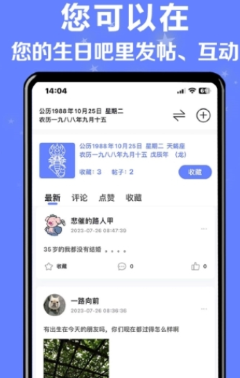 在生日吧软件里面可以知晓自己的生日去哪一天,还可以寻找到与自己同一天生日的网友,交友玩法都比较的新颖,过生日的当天可以和很多的网友一起过,还能发布自己的生活动态,话题都比较多,你过生日的那一天会发出的热闹,随时都可以发帖进行互动。