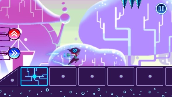 你需要提前将“跳跃”和“冲刺”两种能力放到方块上去,主角才能在踩到方块时进行执行,而随着游戏速度的加快,你需要更快的反应能力和一点预判能力。