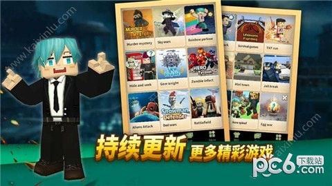 ☆多类型游戏:Blockman GO 使用Mods来制作各种各样的小游戏提供给广大爱好沙盒类游戏的玩家,而且游戏还在持续更新中。在这里您可以玩到最受欢迎的小游戏如Survival Game, Sky War, and Bedwars,无需输入复杂的IP地址和设置,只需轻轻点击加入游戏,就可以享受小游戏带来的无限乐趣。