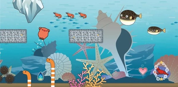 除了游戏初期的角色萌哒哒章鱼以外,还有很多拥有各种技能的可爱角色。根据角色的不同,技能的种类和强度,基础体力也不同。可以使用在游戏中获得的虾,解锁隐藏的角色吧!