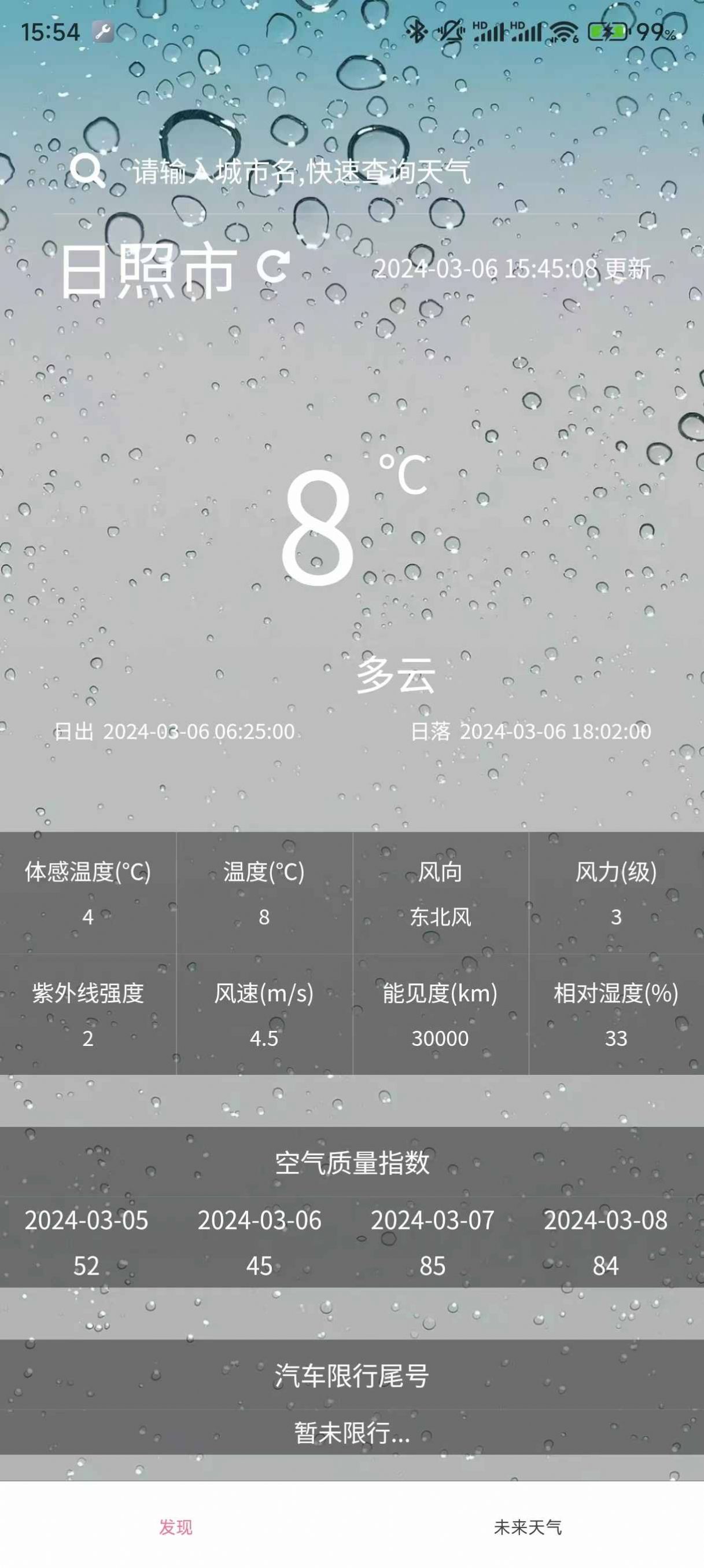 小玖天气app主界面清晰地展示了当前位置的天气状况,包括温度、湿度、风速等关键信息,并且配有动态的天气图标,让人一目了然。该软件能够展示未来几天乃至一周的天气预报,帮助用户提前做好出行准备。软件还提供了多项实用工具,诸如穿衣建议、紫外线指数提示等,这些都基于当前的天气情况给出,非常贴近用户的实际需求。