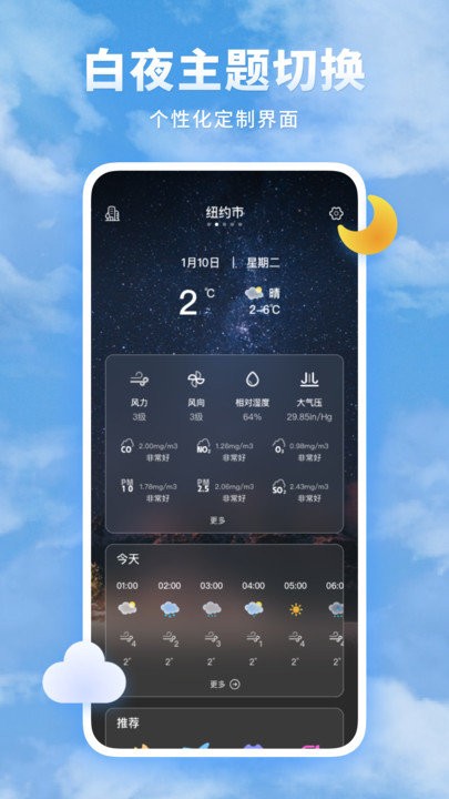 2. 生活指数:除了基本的天气信息,软件还提供了空气质量、紫外线强度、穿衣指数、运动指数等生活指数,帮助用户更好地安排日常生活。