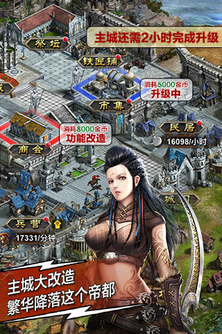 加入阵营后玩家即可获得属于自己的城市,但城市暂时却还仅仅只是开启了城门,城市中所有的一切都需要玩家自己建设。征战部队训练的兵营、获利的民居、产出木材的木场、供应部队粮食的农场等都需要玩家一步步建设,每个建筑都有极其重要的作用。建设所需资源初始需要通过副本征战去获得,后续则可以自产自足,但确需要玩家策略性升级才能获得更多的资源。
