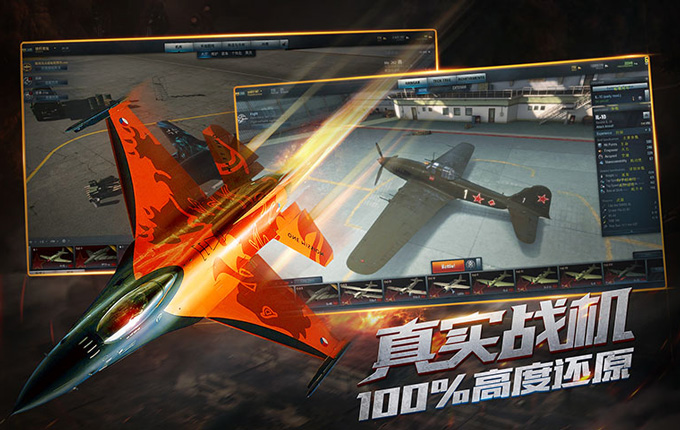 2、真实战机100%高度还原,游戏中的战机全部是根据真实的二战历史数据,通过制作模型、实验室模拟,然后1:1比例缩放制作完成,不管是外型还是性能,都极其真实。5代经典座驾尽数搜罗,中苏美欧4大阵营,F22、歼31、F35、T50等200多架王牌战机尽显风骚,带你重温铁与血的空中战场!