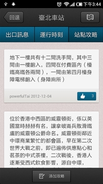 操作简便:无论是车程还是车站资料,只需点击2次即可完成