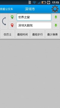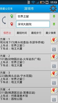 查询模式包括仅查询公交巴士、最短时间、最短步行,最少换乘等四种方式,可以根据情况使用最适合的方式查询。在地名重复时,能够支持提示输入地名。