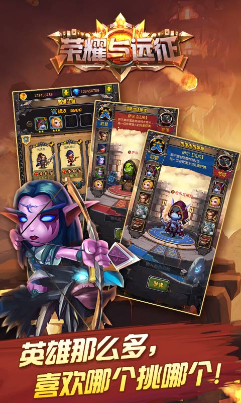 《荣耀与远征》是一款多人联网即时战斗的大型魔幻动作竞技类游戏,游戏拥有顶级画质,华丽的技能特效和打击感,众多熟悉的魔兽英雄将悉数登场,给你最为熟悉的感觉,每个英雄都有优先攻击的对象,快来下载体验吧!