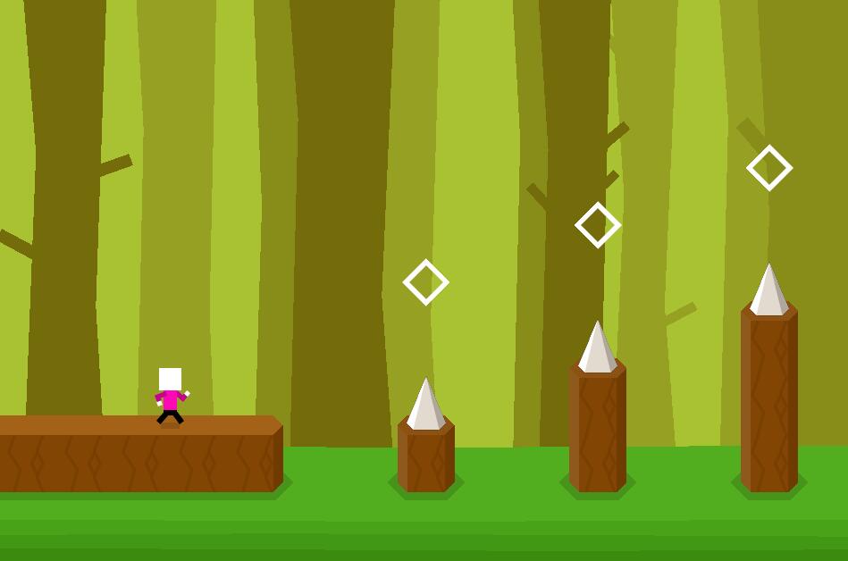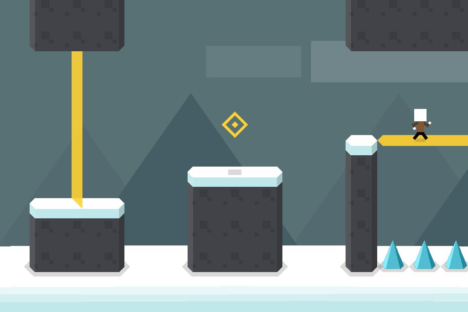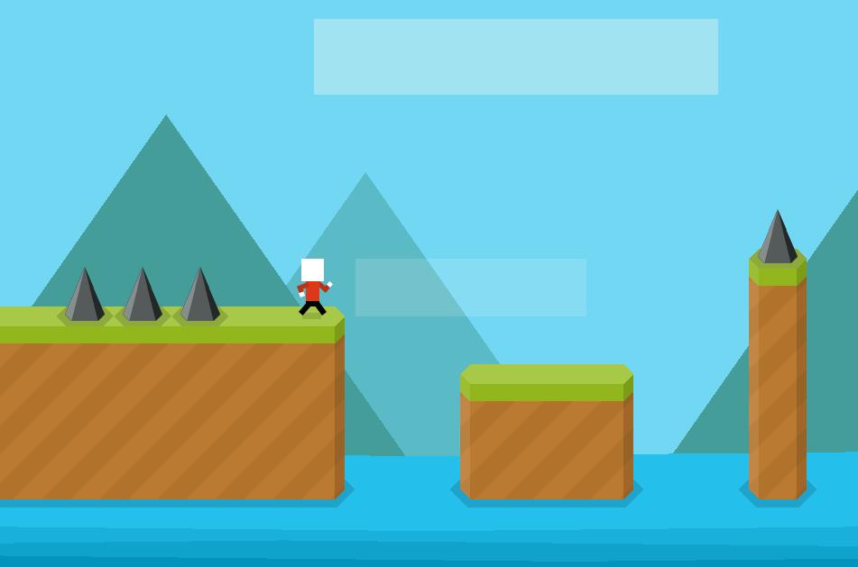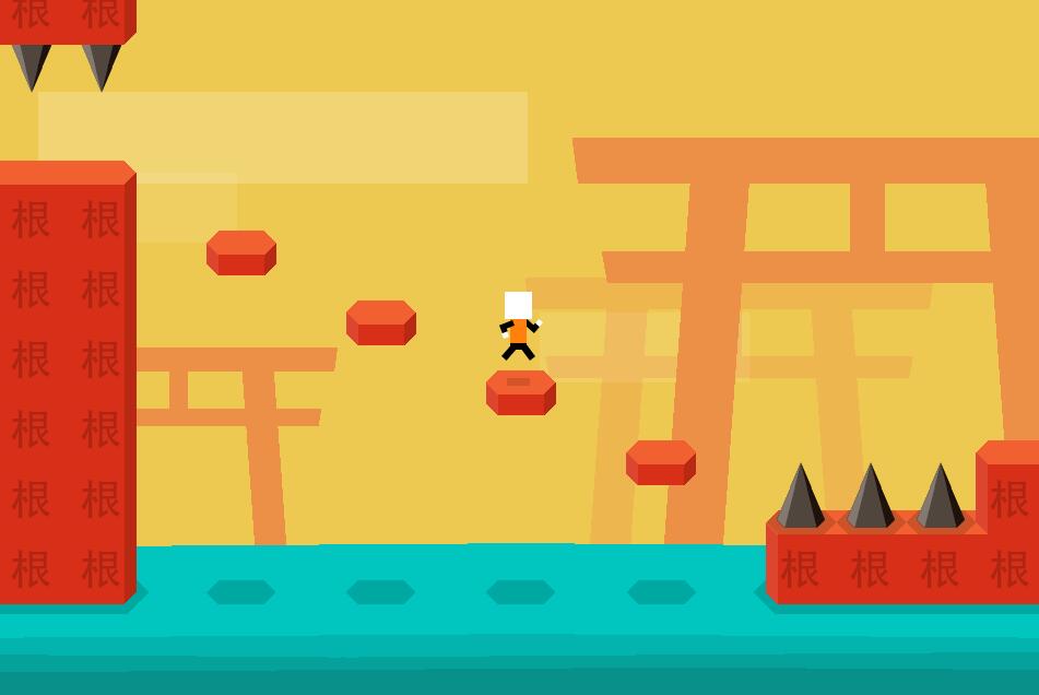 判定:游戏之中的判定是根据我们是否站在平台上方而定,如果我们角色撞在墙壁或者没站在平台上面,都视为失败情况,相反的是我们可以利用针刺间的缝隙来跳跃的。