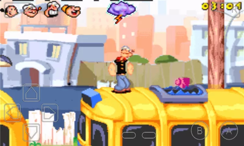 《大力水手:菠菜狂奔(GBA移植)》安卓免费游戏是由NAMCO制作的以当年的知名动画人物大力水手Popeye制作的GBA游戏,在游戏中,将有包含码头、沙漠等场景的七个关卡,游戏中也将有诸如火箭、滑板、汽车甚至恐龙等多种道具可供使用,当然,大力水手中知名的菠菜也将在游戏中充分体现出。大力水手:菠菜狂奔(GBA移植)安卓免费游戏。