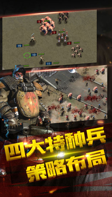 一款末日题材丧尸策略手游,在游戏中,四大特种兵组团竞技,打败丧尸军团方能重回新生,多种资源合理分配,步步为营,闯入奇妙领域,绝处求生,守护人类最后的净土!末世战役还有超震撼的世界,任你为王,铁血战斗情谊等你来体验!