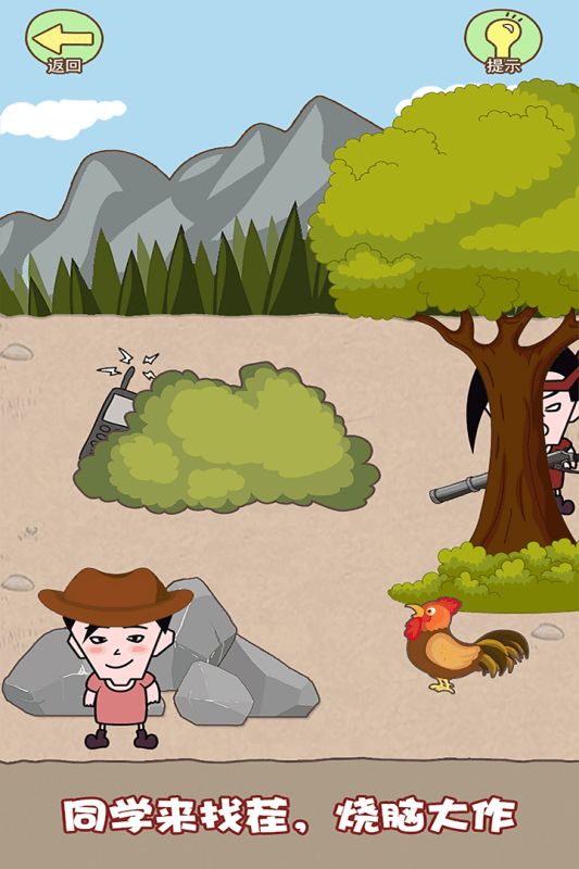 脑袋不带点转弯的人都玩不转的游戏!《同学来找茬》是一款每一关毫无关联的小游戏,以碾压人智商、坑爹坑出新高度为游戏宗旨,采用简单的眼力和智力的考验,每一关在出其不意的时候,还会给你带来不一样的乐趣和无语感,好在的是画风清新搞笑,想要成功通关,就不要带自己的一般智商,带着三班人的智商就行了。