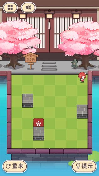 在地图中自由移动,按照关卡任务来操作,将小女孩顺利的移动到有樱花图案的格子上;
