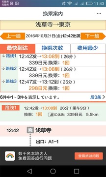 500万在日游客使用的换乘案内。随时帮您设定完美路线,不限于地铁,电铁,JR,新干线,巴士等公共交通工具。无论是行前路线规划,还是行中路线设定,只需输入起点和终点,软件即可帮您匹配合适路线,轻松到达目的地。