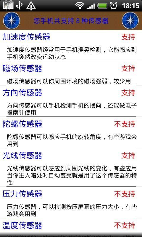 4.改进传感器检测功能,对手机支持什么传感器和其功能一目了然