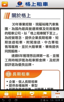 * 更多:一键直接拨通格上租车24小时服务专线, 并提供「最新消息」、「车型价目」及「关于格上租车」等信息