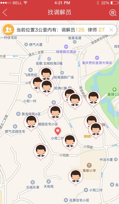 2. 搜索调解员:用户根据自身需求,搜索附近的司法调解员,查看其详细信息。